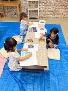「次は何色にしようかな~?」「黒で塗るの手がいたくなる~!」「(竹串で引っ掻いてきれいな色が出てくると)わ~キレイ!おもしろい!たのしい!」「It’s fun!!」「Scratch楽しい~♡」「手が真っ黒け~」などと、次々に感想が出てきます。